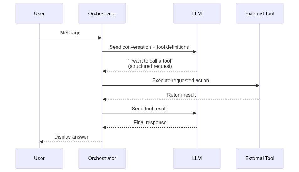 Tool calling gives the LLM the ability to "reach out". It can gather information from the web, run commands or control applications on your machine. Or read and reply to your emails. Or check your bank balance and go on a shopping spree. The more tools it has, the more autonomous it feels — and, yeah, the scarier it gets.